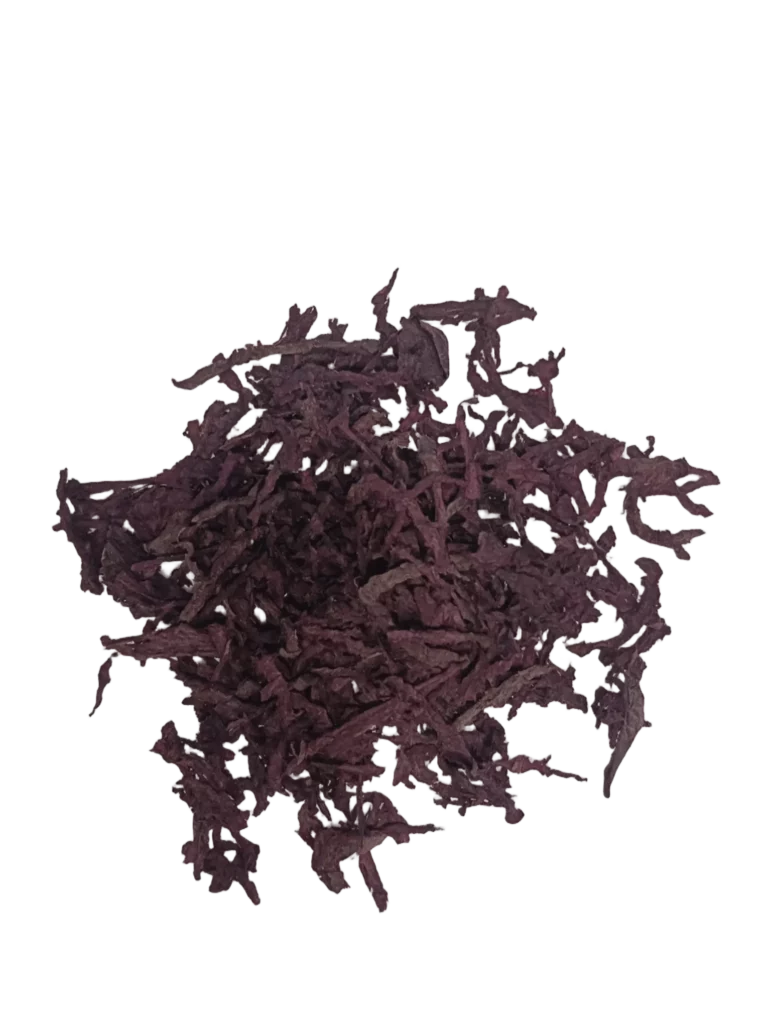 Betterave soigneusement sélectionnée, râpée puis déshydratée à basse température afin de préserver la couleur rouge intense naturelle, la texture fine et la saveur douce caractéristique.