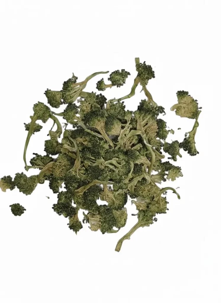 Brocoli soigneusement sélectionné puis déshydraté à basse température afin de préserver la couleur verte naturelle, la structure des fleurettes et la saveur végétale caractéristique.